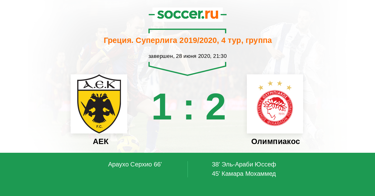 38' (0:1) Эль-Араби Юссеф (11) (Масурас Гиоргос (19))