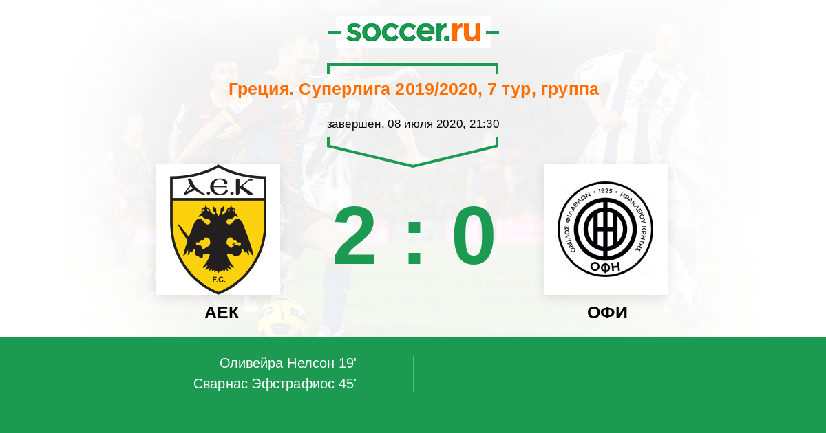 45' (2:0) Сварнас Эфстрафиос (24) (Ливайя Марко (10))
