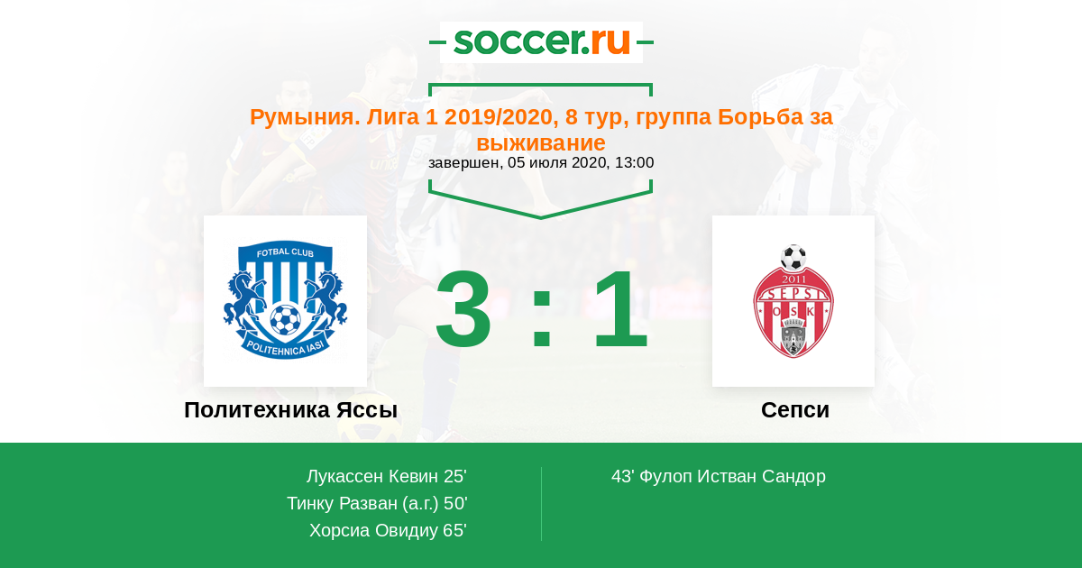 65' (3:1) Хорсиа Овидиу (30) (Чакана Лукас (32))