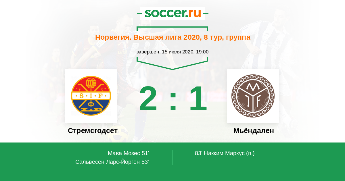 53' (2:0) Сальвесен Ларс-Йорген (88) (Майгард Миккель (20))
