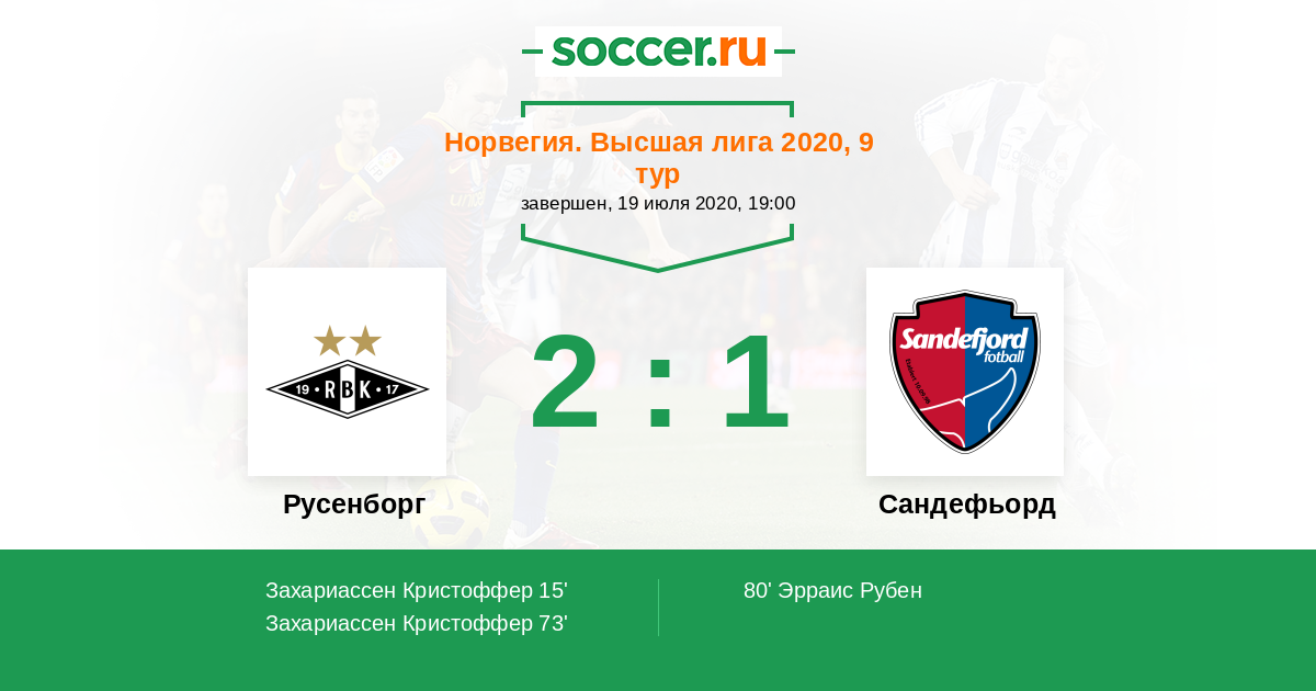 15' (1:0) Захариассен Кристоффер (18) (Хеденстад Вегар (2))