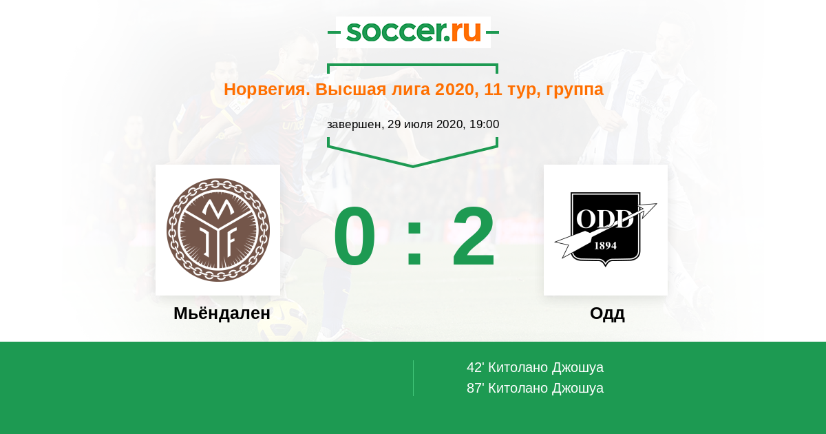 42' (0:1) Китолано Джошуа (16) (Рууд Эспен (2))