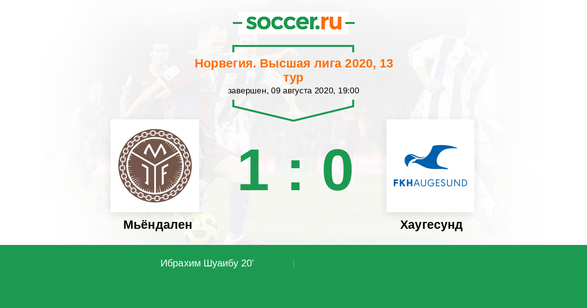 20' (1:0) Ибрахим Шуаибу (22) (Драгснес Ветле (3))