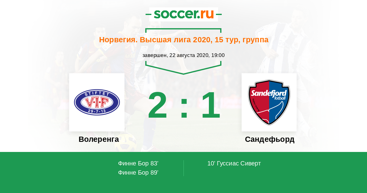 89' (2:1) Финне Бор (11) (Доннум Арон (9))