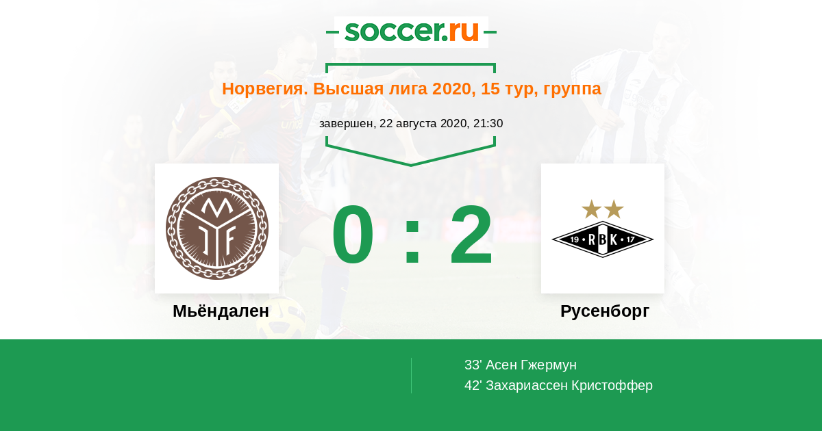 42' (0:2) Захариассен Кристоффер (18) (Хелланд Пал-Андре (10))