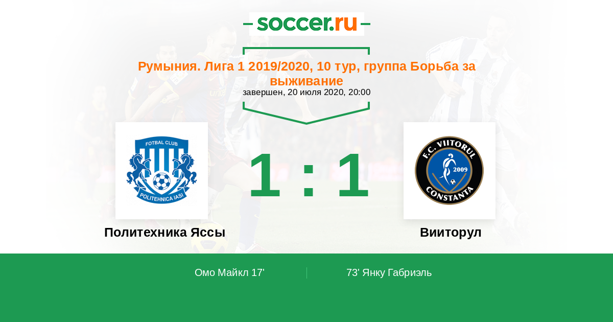 17' (1:0) Омо Майкл (29) (Хорсиа Овидиу (30))