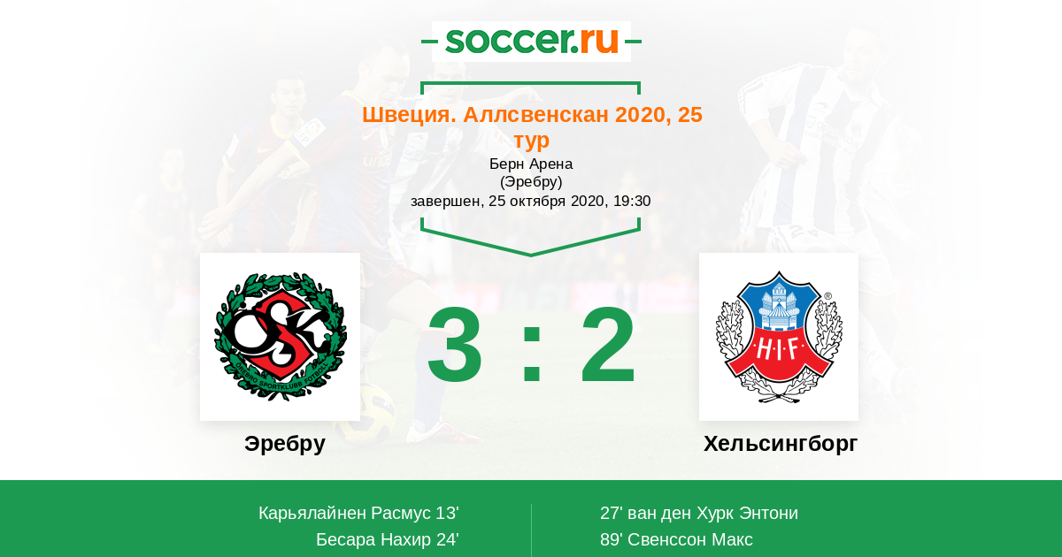 27' (2:1) ван ден Хурк Энтони (39) (Эрикссон Адам (11))