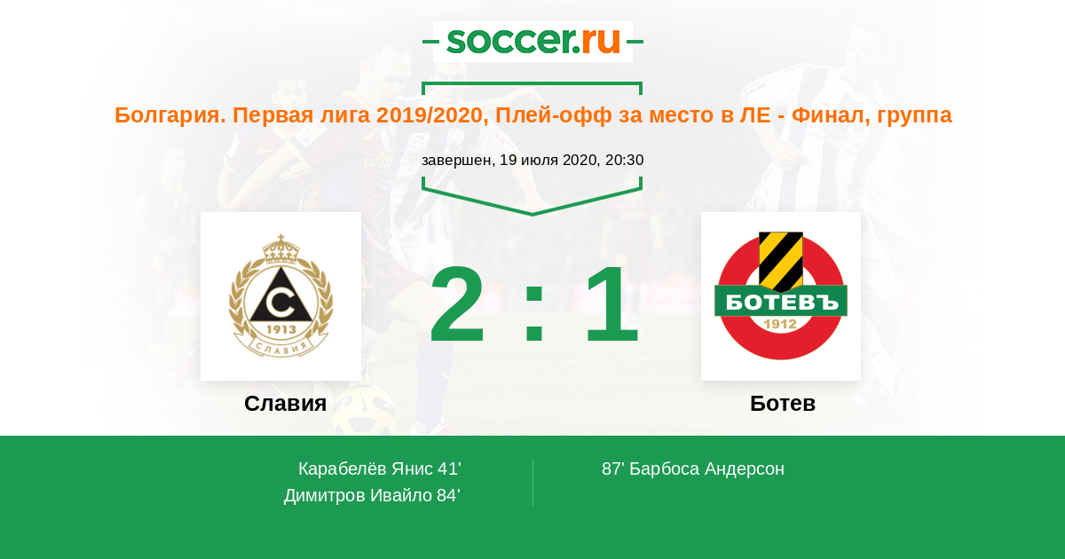 41' (1:0) Карабелёв Янис (10) (Кирилов Радослав (11))
