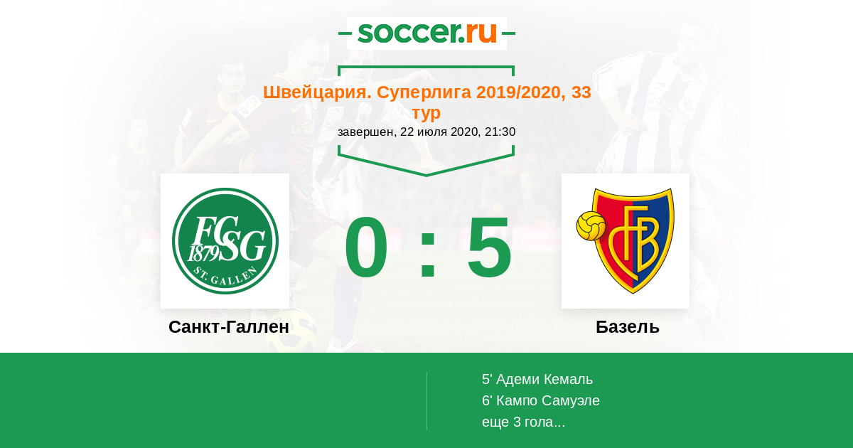 6' (0:2) Кампо Самуэле (10) (Видмер Силвэн (5))