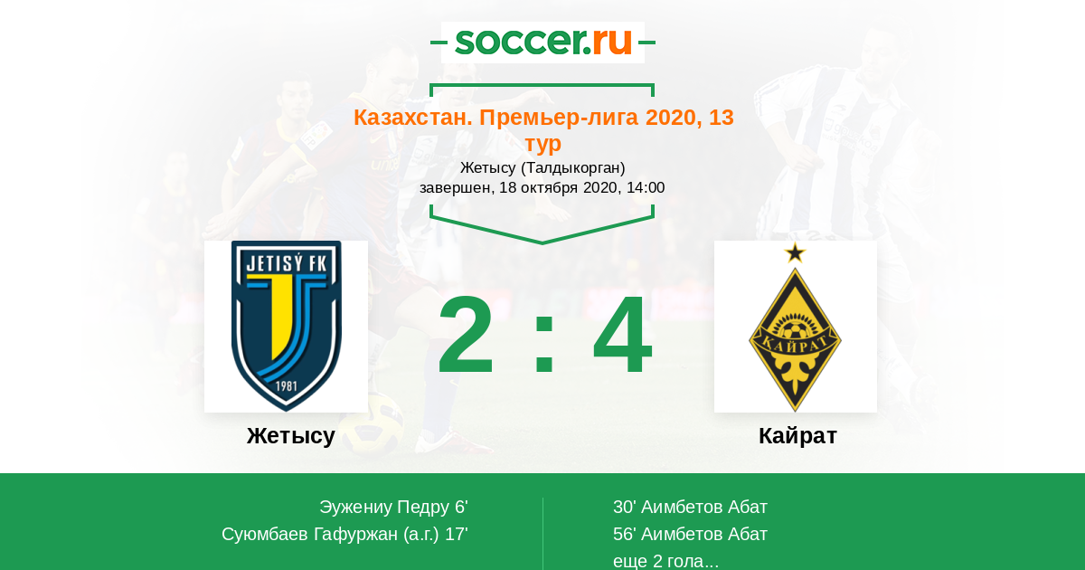 17' (2:0) Автогол Суюмбаев Гафуржан (5)
