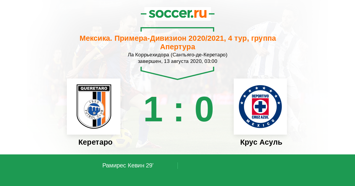 29' (1:0) Рамирес Кевин (7) (Сепулведа Анхель (15))