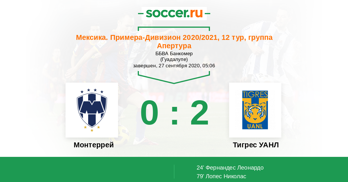 24' (0:1) Фернандес Леонардо (17) (Родригес Луис (28))