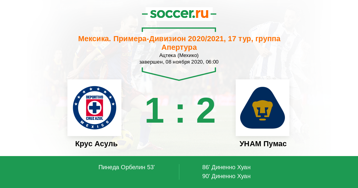 53' (1:0) Пинеда Орбелин (31) (Родригес Хонатан (21))