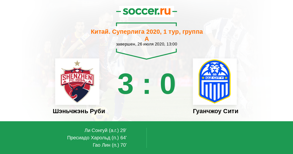 70' (3:0) Гао Лин (29)
