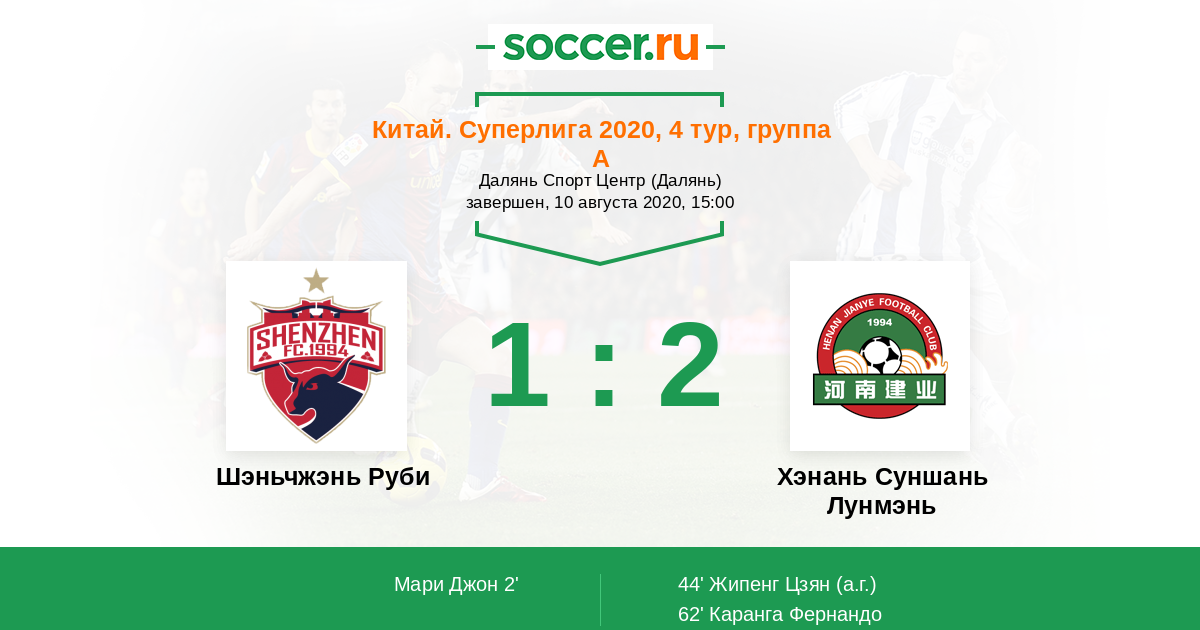 44' (1:1) Автогол Жипенг Цзян (21)