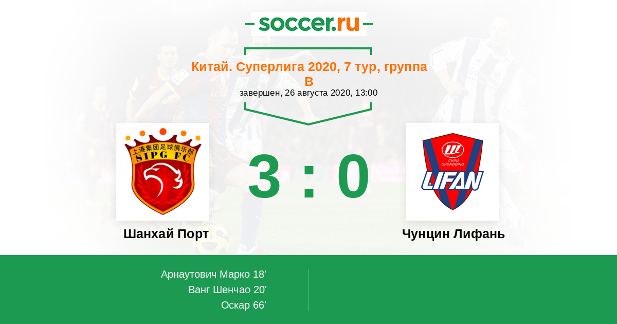 66' (3:0) Оскар (8) (Ванг Шенчао (4))