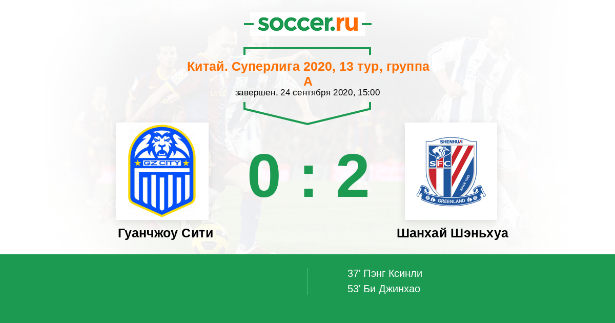 53' (0:2) Би Джинхао (3) (Пэнг Ксинли (25))