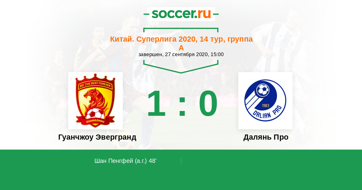 48' (1:0) Автогол Шан Пенгфей (3)