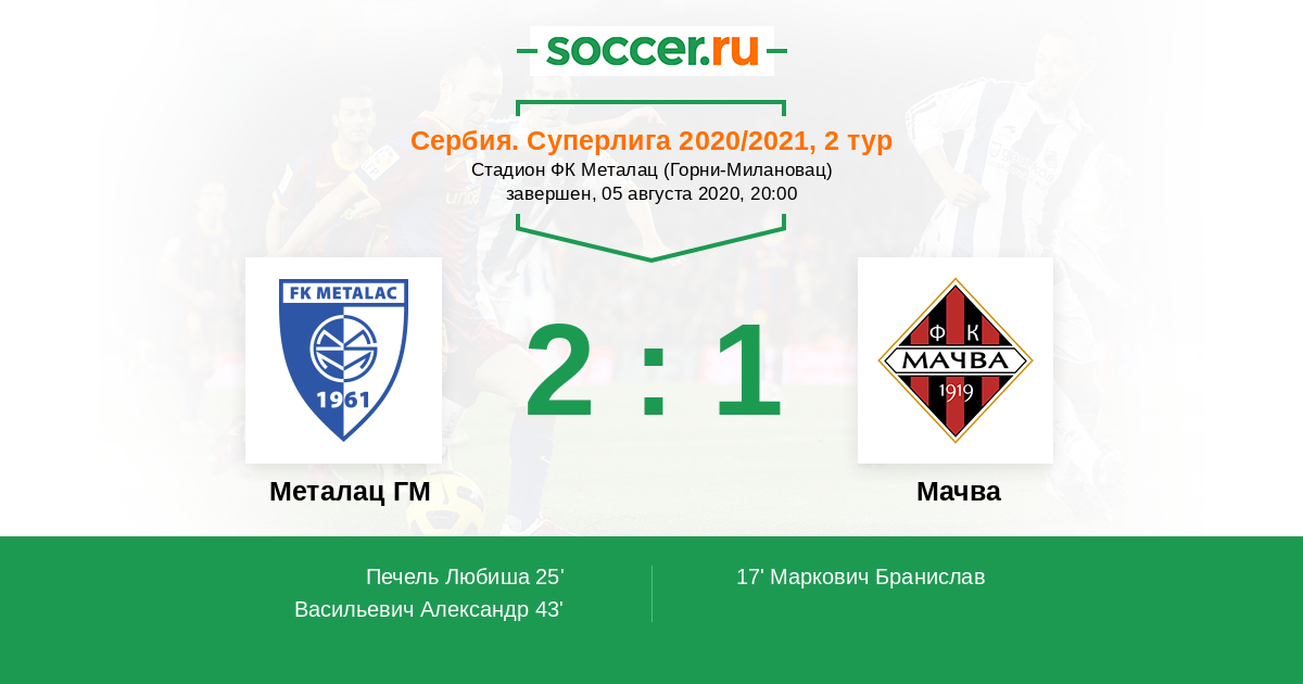 17' (0:1) Маркович Бранислав (11)