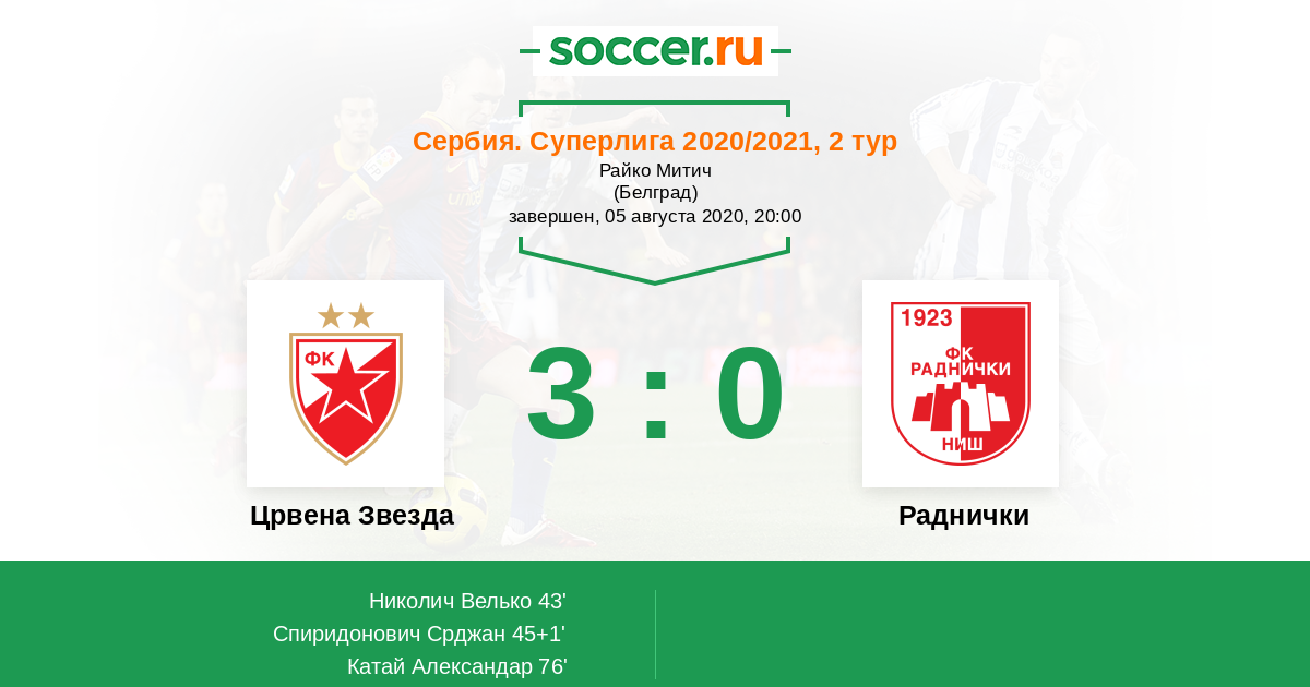 43' (1:0) Николич Велько (22)