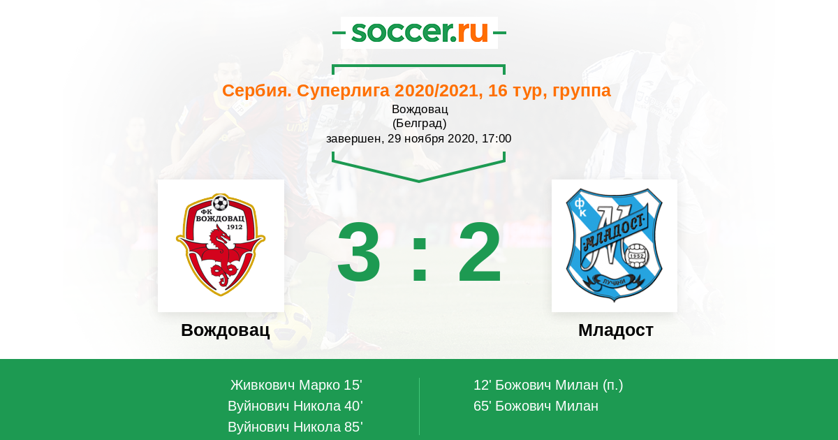 85' (3:2) Вуйнович Никола (19)