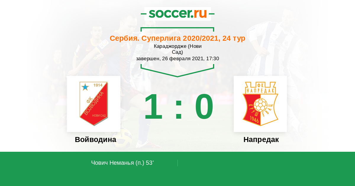 53' (1:0) Чович Неманья (7)