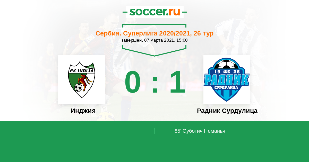 85' (0:1) Суботич Неманья (23)