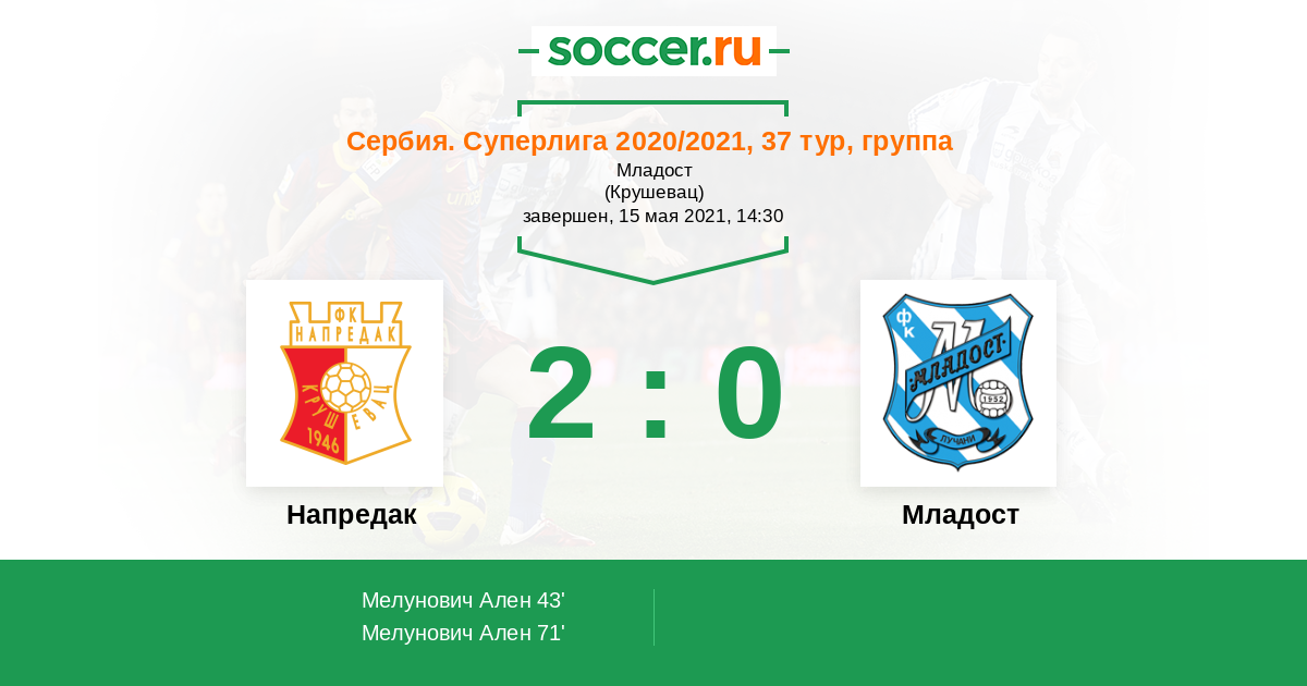 71' (2:0) Мелунович Ален (9)