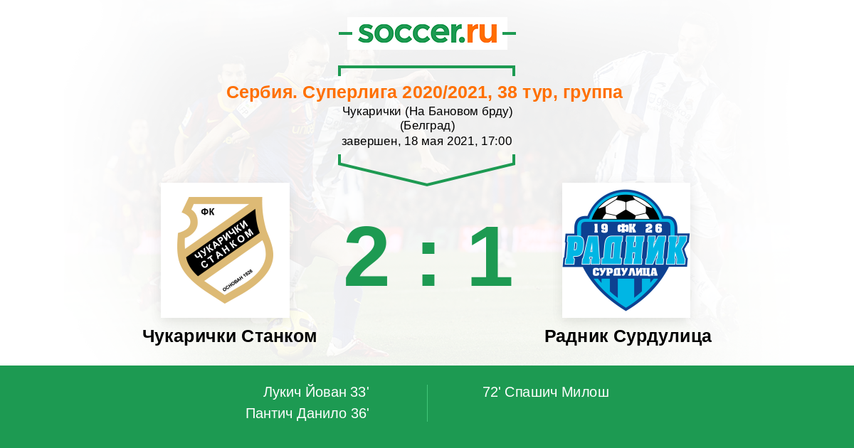 Запасные: 23 Суботич Неманья (с 46'), 29 Милованович Урош (с 46'), 44 Байнович Филип (с 48'), 88 Сулеман Витан (с 81'), 3 Йокич Ранко, 12 Костич Иван, 13 Митич Лазар