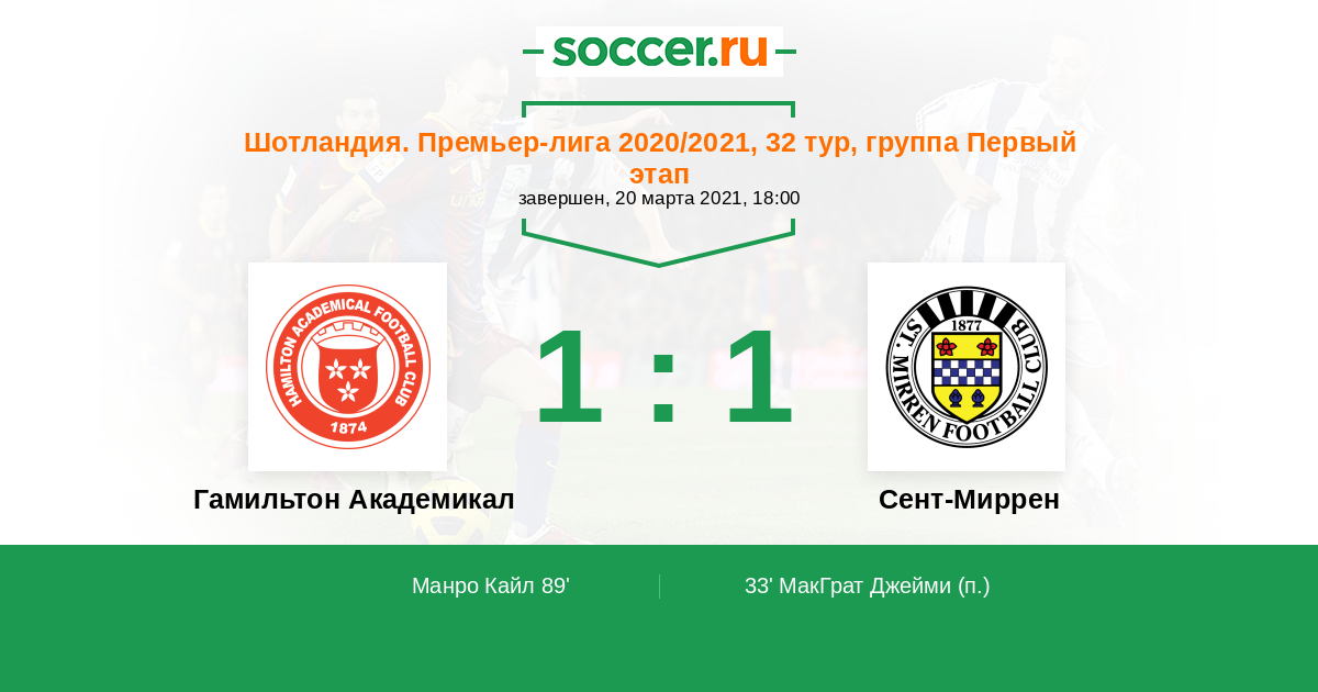 89' (1:1) Манро Кайл (21) (МакМанн Скотт (3))