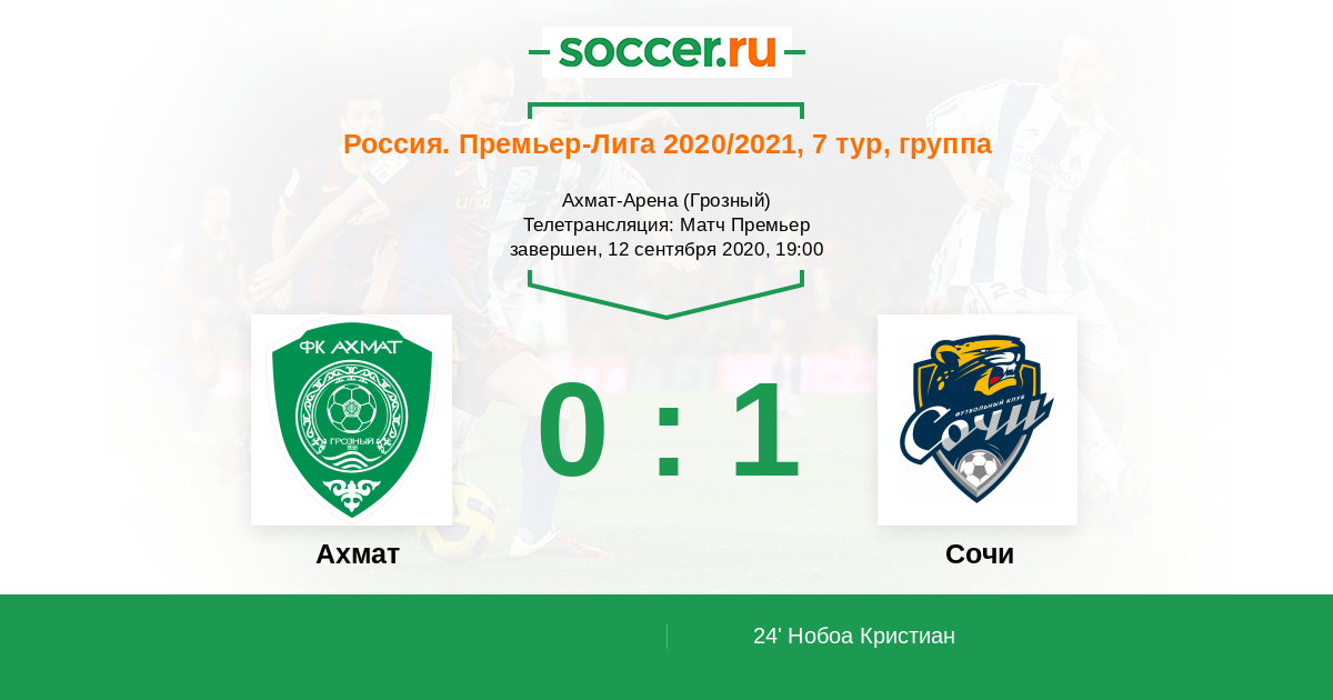 Анхель (травма), Уциев (травма) – оба «Ахмат». Немченко (травма), Померко (травма) – оба «Сочи».