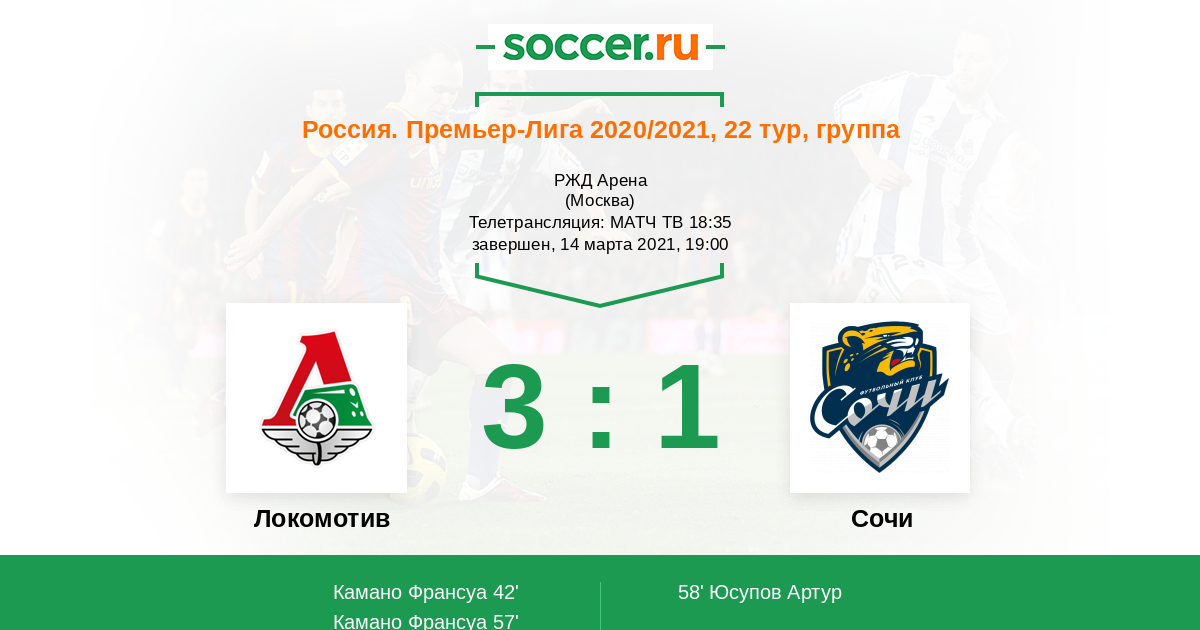 Локомотив с заслуженой победой. Судья много нарушений против Локомотива пропускал. Но это Сочи не спасло