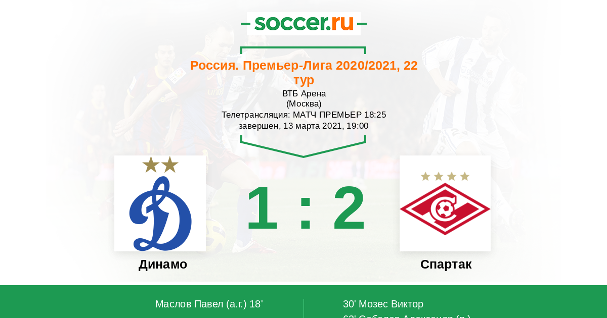 30' (1:1) Мозес Виктор (8) (Соболев Александр (7))