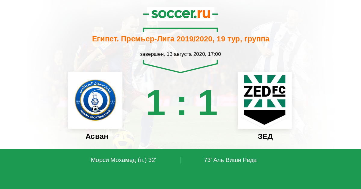 73' (1:1) Аль Виши Реда (7) (Эль Шейк Ахмед (17))