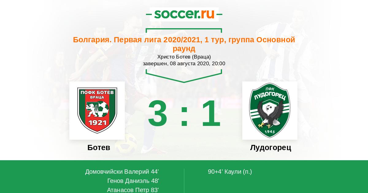 44' (1:0) Домовчийски Валерий (30) (Генов Даниэль (9))