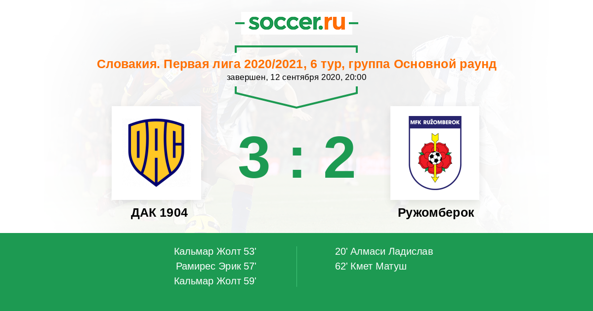20' (0:1) Алмаси Ладислав (99) (Кмет Матуш (4))