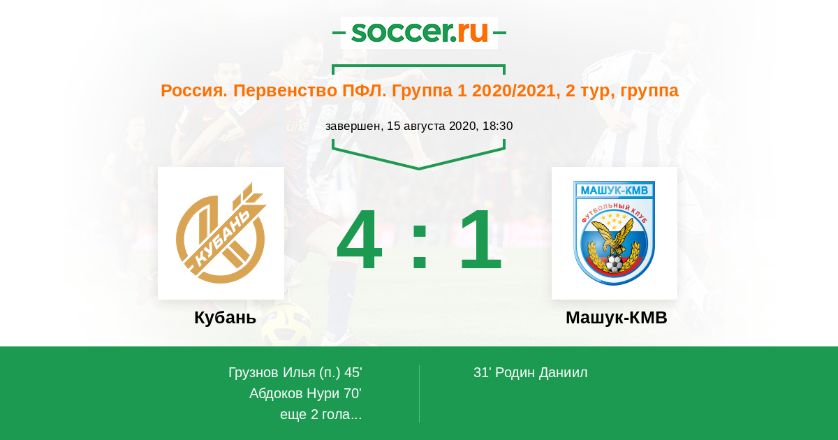 Запасные: Гурфов Азамат (с 46'), Шульгин Алексей (с 46'), Костанди Константин (с 73'), Соловьев Дмитрий (с 85'), Пахлеванян Арман (с 90+1')