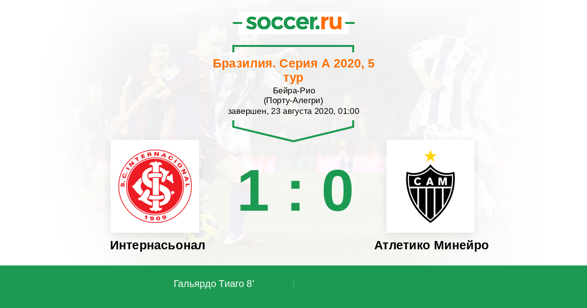 Запасные: 5 Мусто Дамиан (с 60'), 10 Д'Алессандро Андрес (с 78'), 4 Моледо Родриго (с 87'), 31 Пеглоу Жоао (с 87'), 22 де Алмейда Родиней, 25 Жусса, 45 Пракседес Бруно, 11 Юри Альберто, 14 Рибейро Лукас, 29 Саррафиоре Мартин, 1 Фернандес Данило, 30 Джонни Кардосо