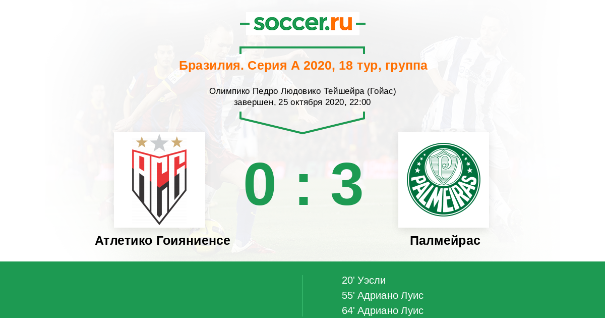 64' (0:3) Адриано Луис (10) (Габриэль Менино (25))
