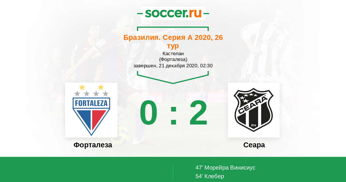 54' (0:2) Клебер (89) (де Соуза Винисиус (29))