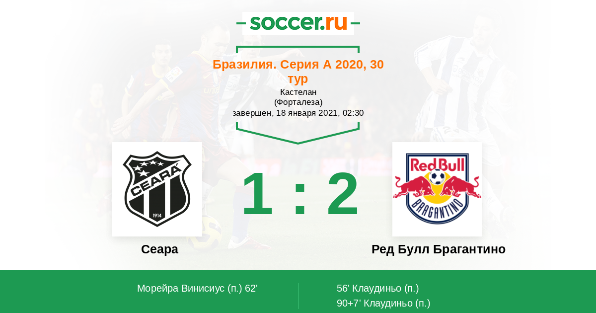 Запасные: 73 Сауло (с 63'), 39 Уэсклей (с 77'), 40 Витор Жакаре (с 77'), 70 Кельвин (с 86'), 5 Виллиан Оливейра (с 86'), 1 Прасс Фернандо, 44 Клаус Уильям, 4 Брок Эдуардо, 86 Карлос Эдуардо, 8 Диас Акоста Рикардиньо, 35 Ригон Шарлес, 31 Педро