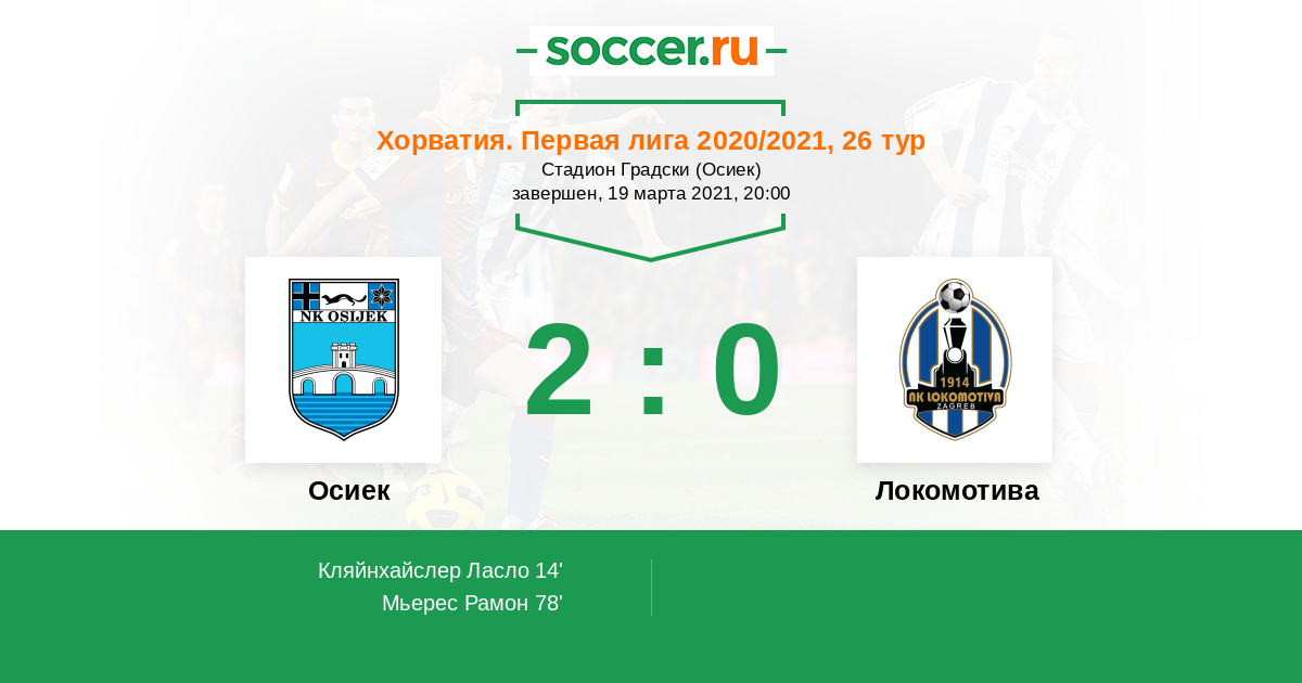 78' (2:0) Мьерес Рамон (13) (Бочкай Петар (12))