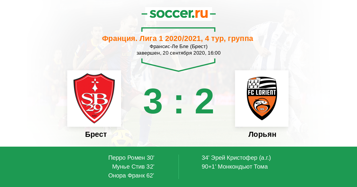30' (1:0) Перро Ромен (18) (Фоссурье Жюльен (22))