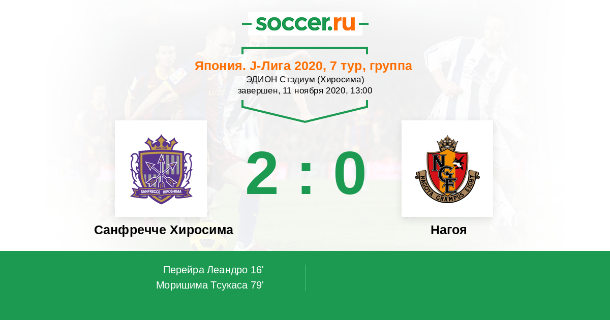 16' (1:0) Перейра Леандро (39) (Хаяо Кавабе (8))