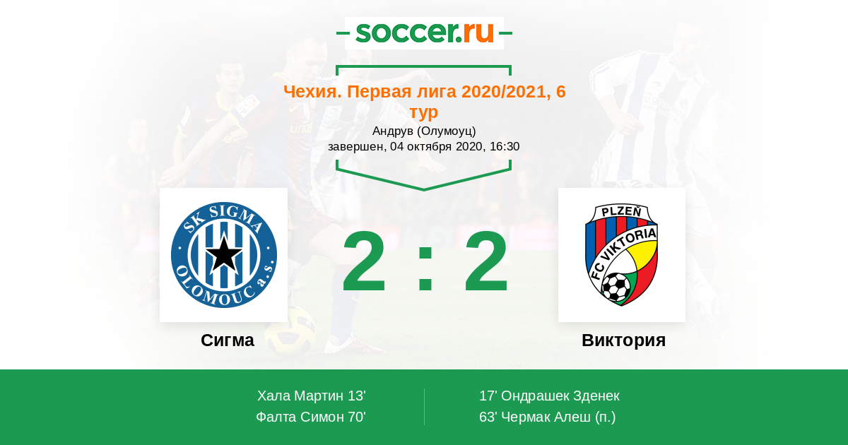 70' (2:2) Фалта Симон (20) (Брейте Радим (7))