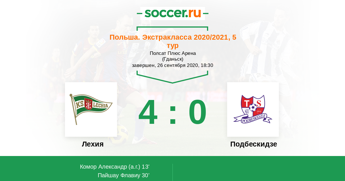 30' (2:0) Пайшау Флавиу (28) (Петрзак Рафал (2))