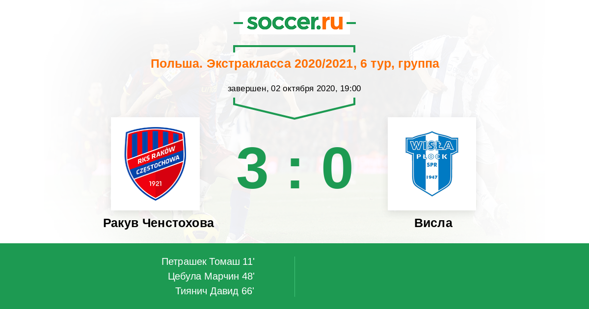 11' (1:0) Петрашек Томаш (2) (Цебула Марчин (77))