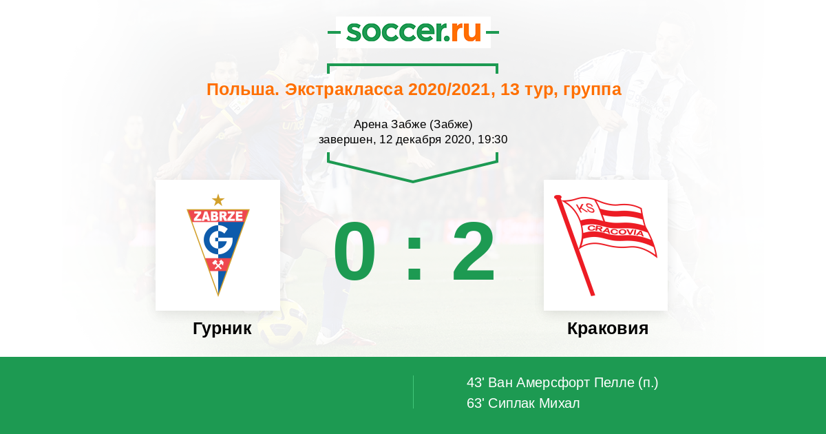 63' (0:2) Сиплак Михал (3) (Ван Амерсфорт Пелле (10))