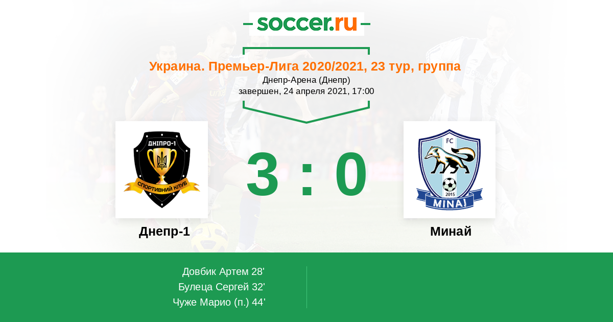 28' (1:0) Довбик Артем (7) (Чуже Марио (25))