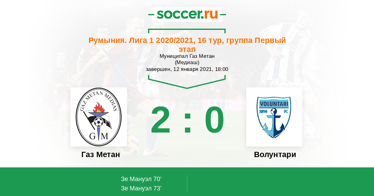 73' (2:0) Зе Мануэл (29) (Валенте (91))